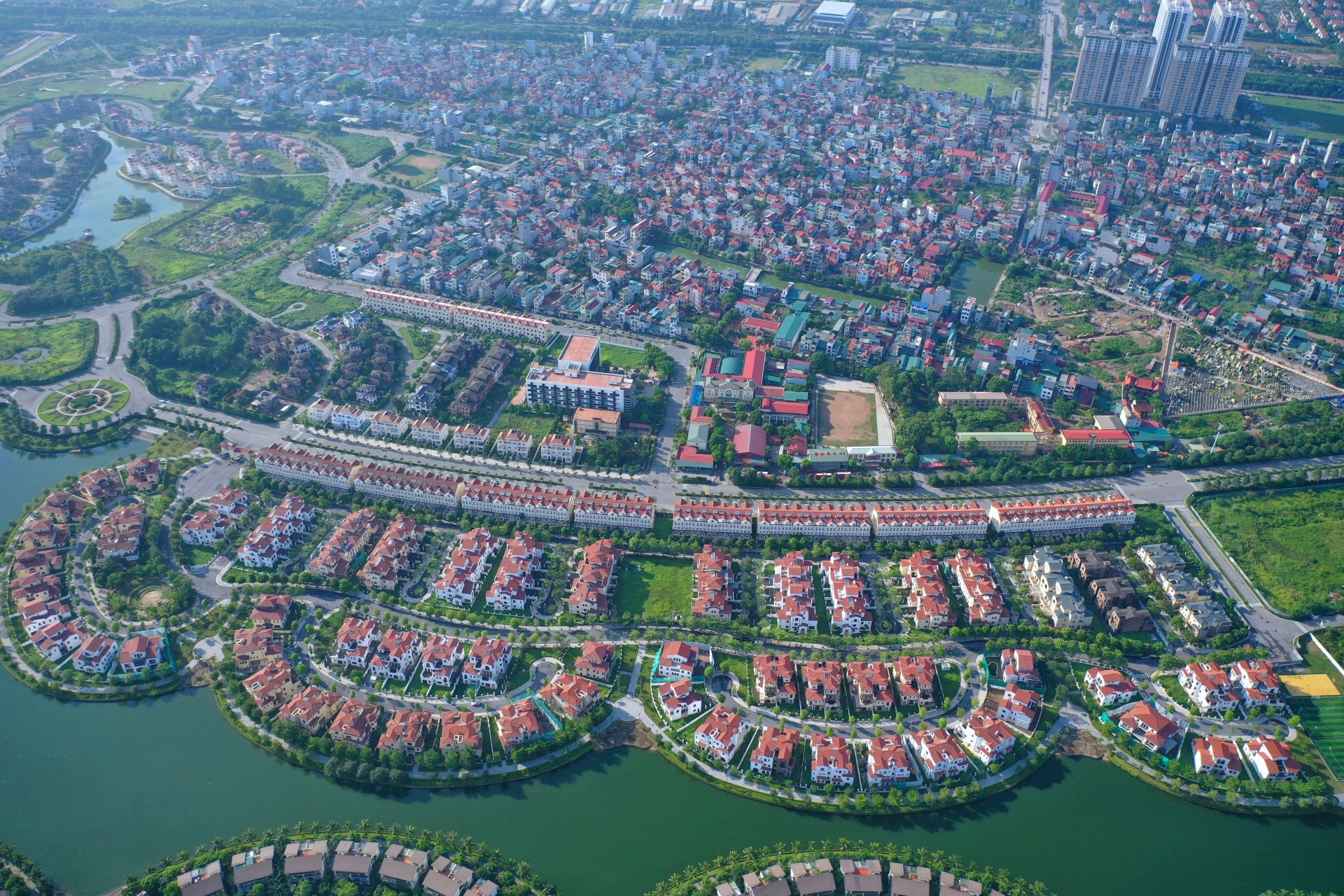 Hệ thống hạ tầng nội khu và khu vực lân cận được đầu tư bài bản, bao gồm bệnh viện, trường học từ mầm non đến đại học, trung tâm thương mại, công viên giải trí và sân vận động. Tổ hợp tiện ích này tạo nên một hệ sinh thái sống toàn diện, đáp ứng đa dạng nhu cầu của cư dân. Đáng chú ý, tỷ lệ cây xanh đạt 4,6 m2/người - cao gấp đôi quy chuẩn đô thị loại đặc biệt và loại I, thể hiện định hướng phát triển bền vững, ưu tiên không gian sống xanh.